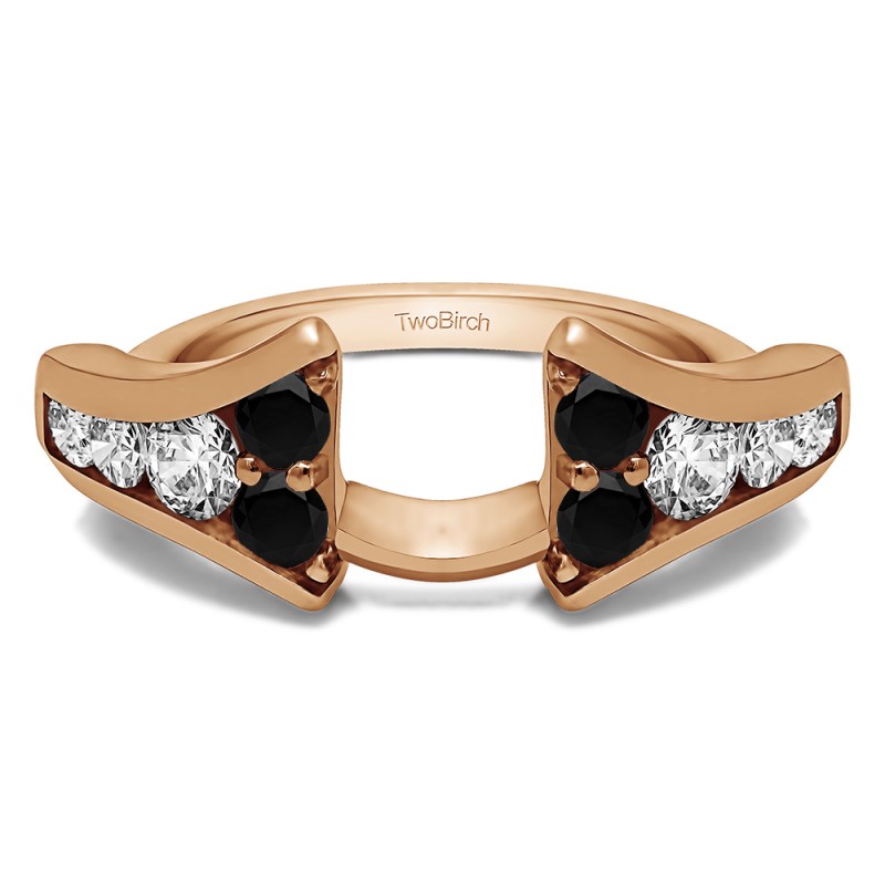 This ring wrap has 10 round, channel set stones with a total combined weight of 0.5 carats. It has a total width of 2.2 millimeters and has a unique Y shape with stones that lead up to the center. This ring wrap is made to fit a round solitaire from 0.25 carat up to 1 carat, or a marquise solitaire from 0.25 carat up to 0.5 carat, or a princess solitaire from 0.3 carat up to 1 carat.