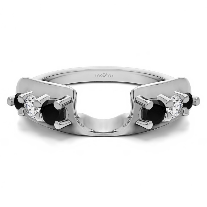 This ring wrap has 6 round, prong set stones with a total combined weight of 0.5 carats. It has a total width of 1.8 millimeters. The stones in the ring wrap jacket are graduated in size. This ring wrap is made to fit a round solitaire from 0.25 carat up to 1 carat, or a marquise solitaire from 0.25 carat up to 0.5 carat, or a princess solitaire from 0.3 carat up to 1 carat.