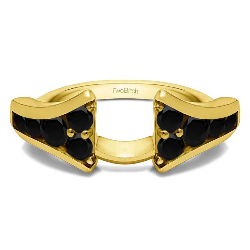 This ring wrap has 10 round, channel set stones with a total combined weight of 0.5 carats. It has a total width of 2.2 millimeters and has a unique Y shape with stones that lead up to the center. This ring wrap is made to fit a round solitaire from 0.25 carat up to 1 carat, or a marquise solitaire from 0.25 carat up to 0.5 carat, or a princess solitaire from 0.3 carat up to 1 carat.