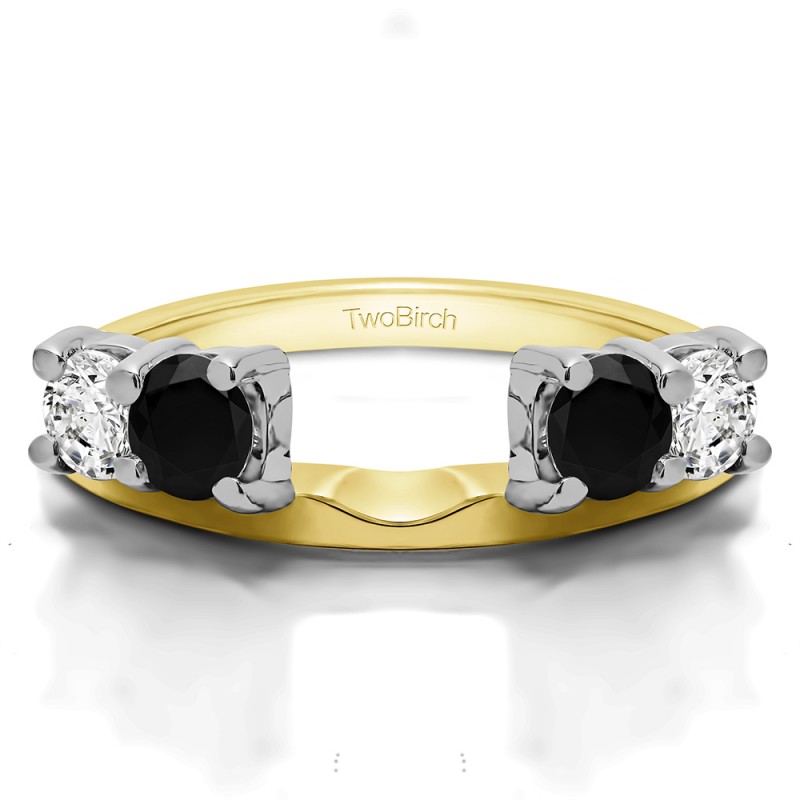 This ring wrap has 4 round, prong set stones with a total combined weight of 0.5 carats. It has a total width of 2.2 millimeters and has four stones, which graduate in size. This ring wrap is made to fit a round solitaire from 0.25 carat up to 1 carat, or a marquise solitaire from 0.25 carat up to 1 carat, or a princess solitaire from 0.25 carat up to 1 carat.