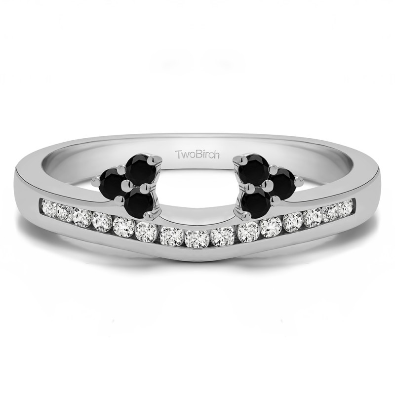 This ring wrap has 21 stones in total. It features a mix of round and round prong set stones with a total combined weight of 0.51 carats. It has a total width of 2 millimeters. It on this anniversary wrap is contoured and channel set with round stones. It also features prong set clusters of round stones with a high polish finish. This ring wrap is made to fit a round solitaire from 0.25 carat up to 1 carat, or a marquise solitaire from 0.25 carat up to 0.5 carat, or a princess solitaire from 0.3 carat up to 1 carat.