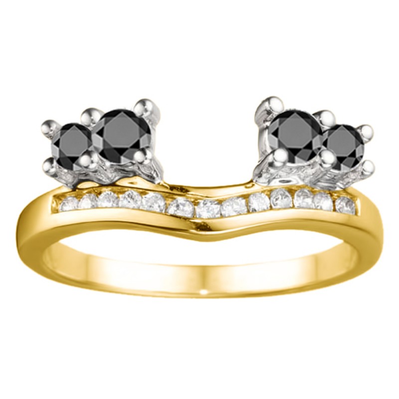 This ring wrap has 19 stones in total. It features a mix of round and round prong set stones with a total combined weight of 0.73 carats. It has a total width of 2.4 millimeters and features a row of round channel set stones on the band and four round prong set stones. Once you add your solitaire, it will create the look of an engagement ring with a matching channel set band. This ring wrap is made to fit a round solitaire from 0.5 carat up to 0.75 carat, or a marquise solitaire from 0.25 carat up to 0.5 carat, or a princess solitaire from 0.5 carat up to 1 carat.