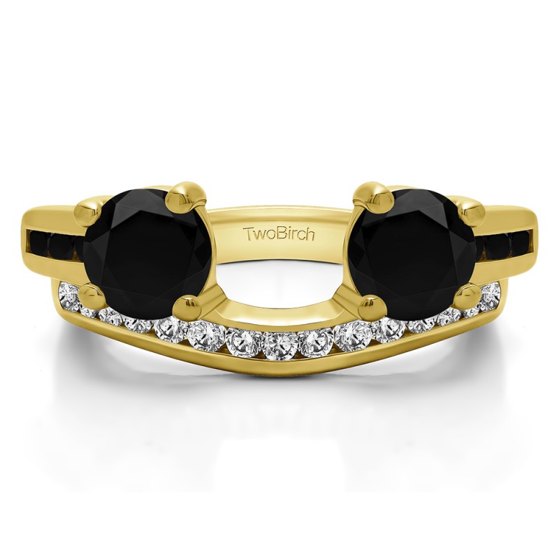 This ring wrap has 23 stones in total. It features a mix of round and round prong set stones with a total combined weight of 0.75 carats. It has a total width of 2 millimeters and features a row of channel set stones on the band and two prong set stones with channel set round accent stones. Once you add your solitaire, it will create the look of an accented three stone engagement ring with a matching channel set band. This ring wrap is made to fit a round solitaire from 0.25 carat up to 1 carat, or a marquise solitaire from 0.25 carat up to 0.5 carat, or a princess solitaire from 0.3 carat up to 1 carat.