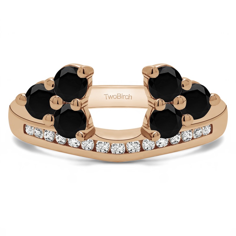 This ring wrap has 22 stones in total. It features a mix of round and round prong set stones with a total combined weight of 0.75 carats. It has a total width of 2 millimeters. It on this anniversary wrap is contoured and channel set with round stones. It also features prong set clusters of round stones with a high polish finish. This ring wrap is made to fit a round solitaire from 0.25 carat up to 1 carat, or a marquise solitaire from 0.25 carat up to 0.5 carat, or a princess solitaire from 0.3 carat up to 1 carat.