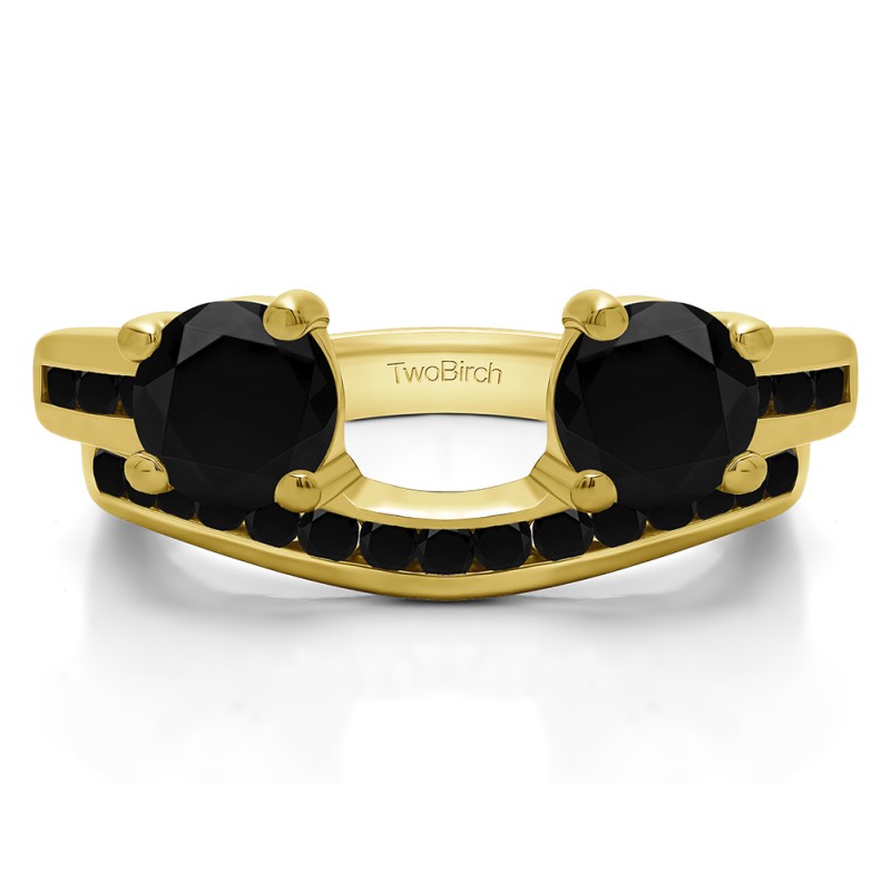 This ring wrap has 23 stones in total. It features a mix of round and round prong set stones with a total combined weight of 0.75 carats. It has a total width of 2 millimeters and features a row of channel set stones on the band and two prong set stones with channel set round accent stones. Once you add your solitaire, it will create the look of an accented three stone engagement ring with a matching channel set band. This ring wrap is made to fit a round solitaire from 0.25 carat up to 1 carat, or a marquise solitaire from 0.25 carat up to 0.5 carat, or a princess solitaire from 0.3 carat up to 1 carat.
