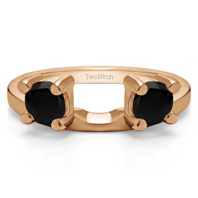 This ring wrap has 2 round, prong set stones with a total combined weight of 0.75 carats. It has a total width of 2.2 millimeters. Adding this ring wrap to your solitaire will create a three stone look. This look will work with any shape center stone. This ring wrap is made to fit a round solitaire from 0.25 carat up to 1.5 carat, or a marquise solitaire from 0.5 carat up to 1 carat, or a princess solitaire from 0.5 carat up to 0.75 carat.