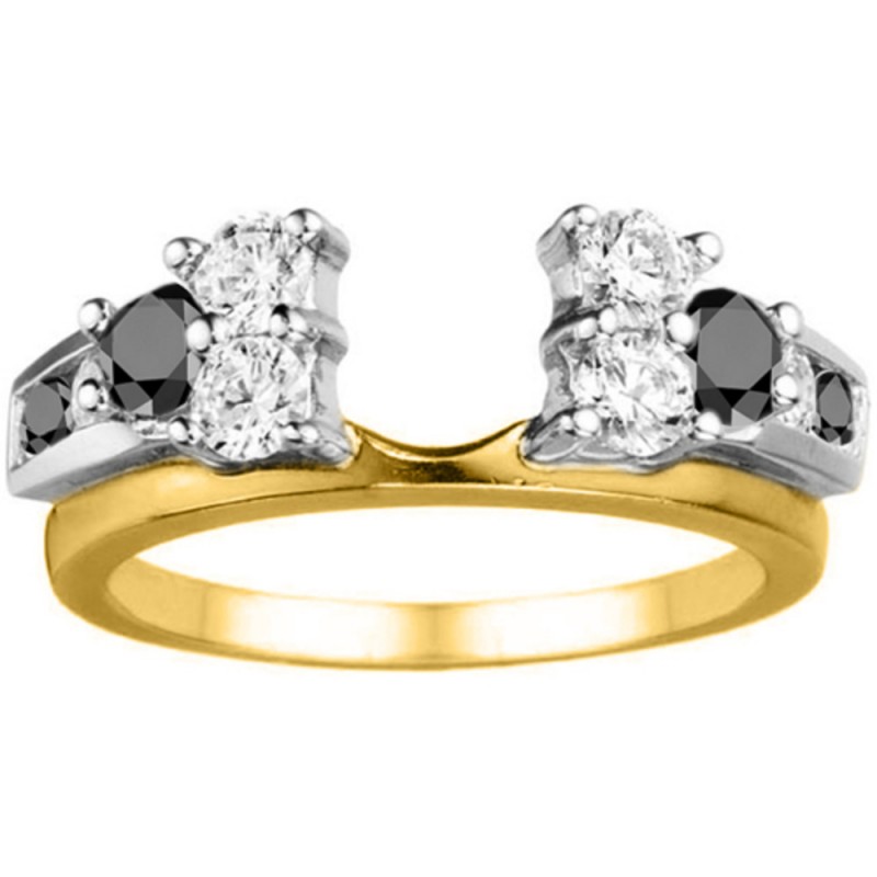 This ring wrap has 10 stones in total. It features a mix of round and round prong set stones with a total combined weight of 0.76 carats. It has a total width of 1.9 millimeters and has a high polish finish and a cluster of round stones. This ring wrap is made to fit a round solitaire from 0.3 carat up to 0.5 carat, or a marquise solitaire from 0.25 carat up to 0.5 carat, or a princess solitaire from 0.3 carat up to 0.5 carat.