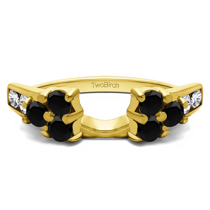 This ring wrap has 10 stones in total. It features a mix of round and round prong set stones with a total combined weight of 0.76 carats. It has a total width of 1.9 millimeters and has a high polish finish and a cluster of round stones. This ring wrap is made to fit a round solitaire from 0.3 carat up to 0.5 carat, or a marquise solitaire from 0.25 carat up to 0.5 carat, or a princess solitaire from 0.3 carat up to 0.5 carat.