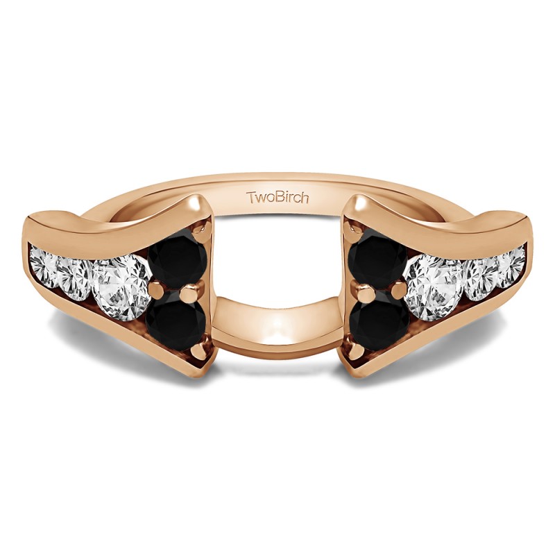 This ring wrap has 10 round, channel set stones with a total combined weight of 1 carats. It has a total width of 2.1 millimeters and has a unique Y shape with stones that lead up to the center. This ring wrap is made to fit a round solitaire from 0.25 carat up to 1 carat, or a marquise solitaire from 0.25 carat up to 0.5 carat, or a princess solitaire from 0.3 carat up to 1 carat.
