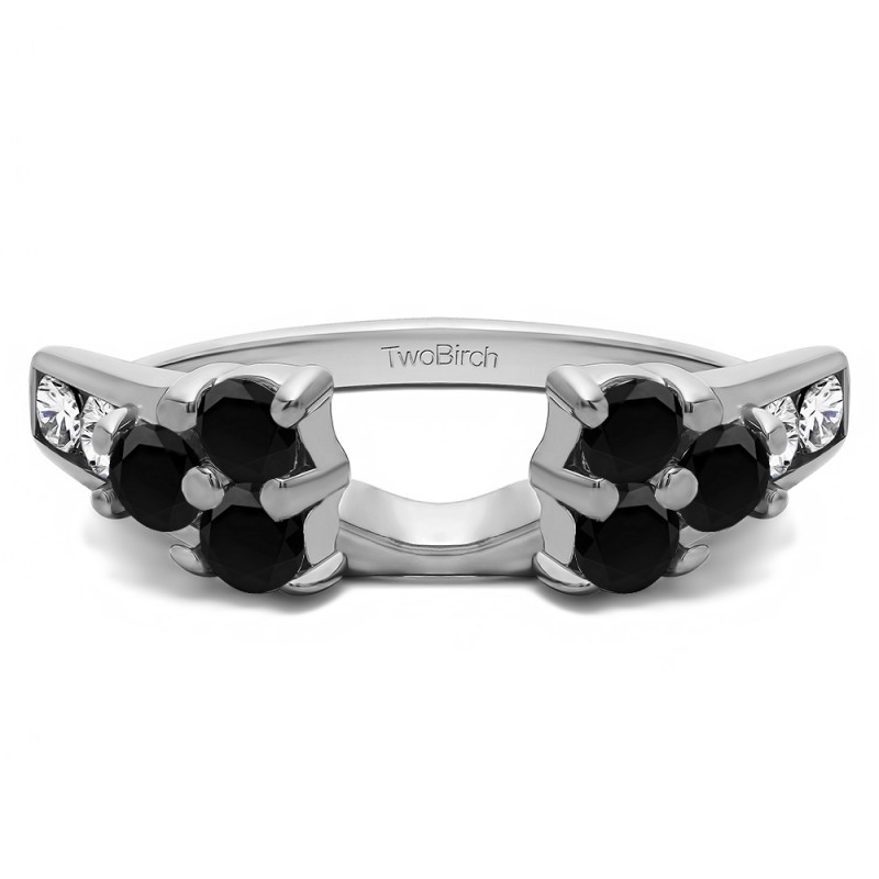 This ring wrap has 10 stones in total. It features a mix of round and round prong set stones with a total combined weight of 1 carats. It has a total width of 2 millimeters and has a high polish finish and a cluster of round stones. This ring wrap is made to fit a round solitaire from 0.25 carat up to 1 carat, or a marquise solitaire from 0.25 carat up to 0.5 carat, or a princess solitaire from 0.3 carat up to 1 carat.