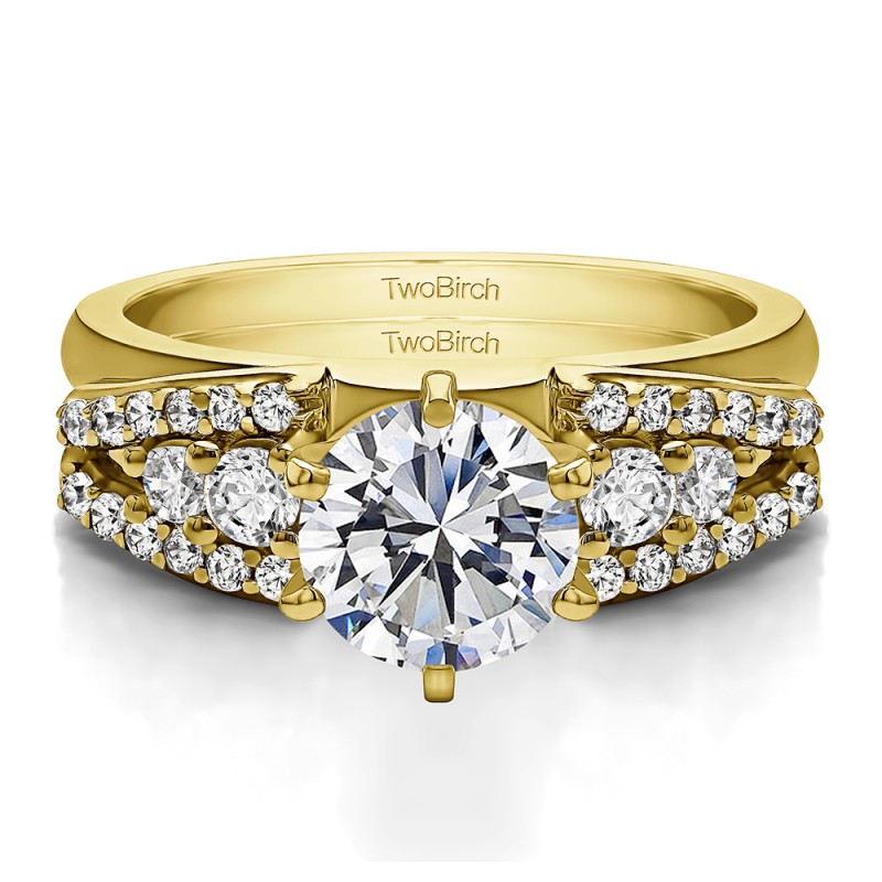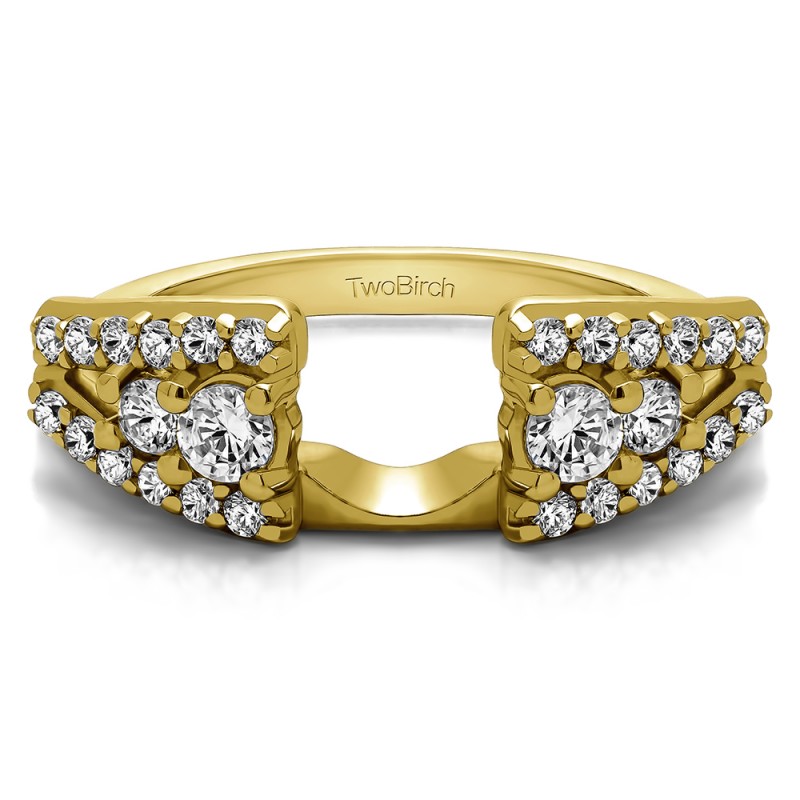 This ring wrap has 28 round, prong set stones with a total combined weight of 0.44 carats. It has a total width of 2 millimeters and features a classic high polish finish. This ring wrap is made to fit a round solitaire from 0.5 carat up to 1.5 carat, or a marquise solitaire from 0.5 carat up to 1.5 carat, or a princess solitaire from 0.5 carat up to 1.5 carat.