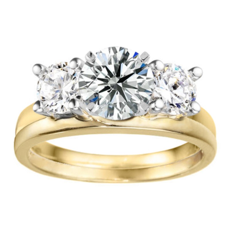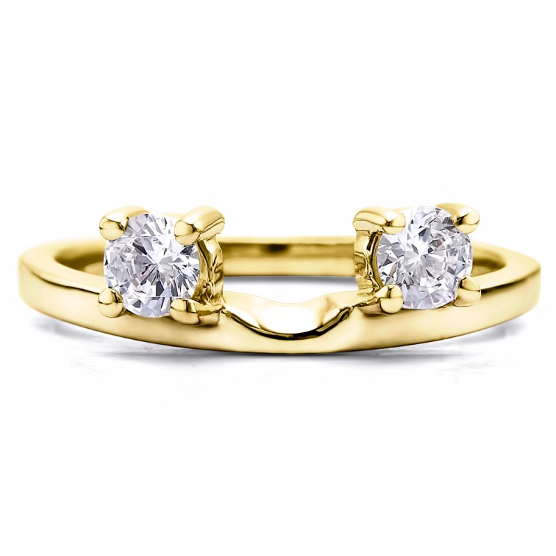 This ring wrap has 2 round, prong set stones with a total combined weight of 0.5 carats. It has a total width of 2.2 millimeters. Adding this ring wrap to your solitaire will create a three stone look. This look will work with any shape center stone. This ring wrap is made to fit a round solitaire from 0.5 carat up to 1 carat, or a marquise solitaire from 0.25 carat up to 0.5 carat, or a princess solitaire from 0.5 carat up to 1 carat.
