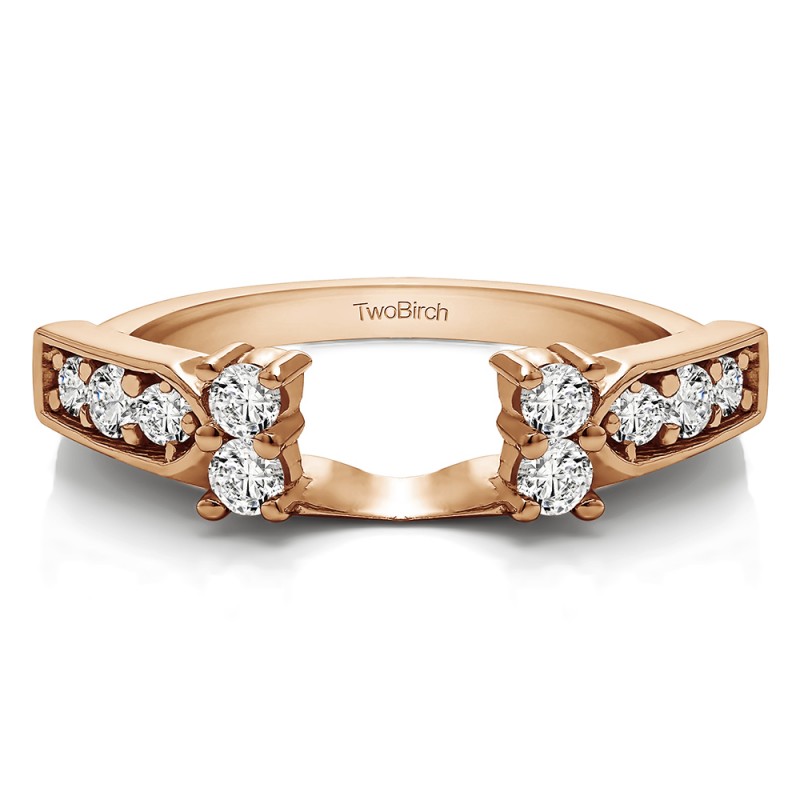 This ring wrap has 10 round, prong set stones with a total combined weight of 0.33 carats. It has a total width of 1.8 millimeters and features millgrained detailing giving a beautiful vintage look. This ring wrap is made to fit a round solitaire from 0.75 carat up to 2 carat, or a marquise solitaire from 0.25 carat up to 0.5 carat, or a princess solitaire from 0.75 carat up to 1 carat.