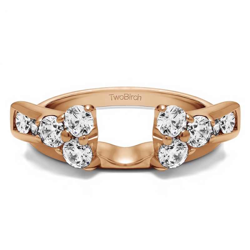 This ring wrap has 10 stones in total. It features a mix of round and round prong set stones with a total combined weight of 0.5 carats. It has a total width of 2.1 millimeters and features a prong set cluster accented with round channel set stones. This ring wrap is made to fit a round solitaire from 0.5 carat up to 0.75 carat, or a marquise solitaire from 0.25 carat up to 0.5 carat, or a princess solitaire from 0.5 carat up to 0.75 carat.