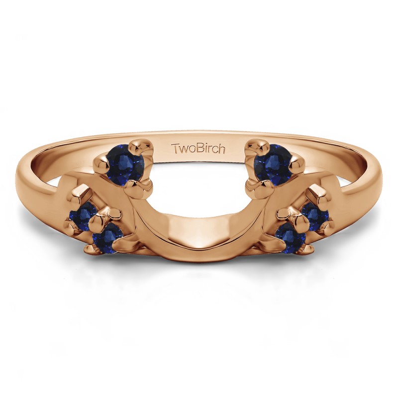 This ring wrap has 6 round, prong set stones with a total combined weight of 0.12 carats. It has a total width of 1.9 millimeters and has a bypass design with a beautiful high polish finish. This ring wrap is made to fit a round solitaire from 0.25 carat up to 1 carat, or a marquise solitaire from 0.25 carat up to 0.5 carat, or a princess solitaire from 0.5 carat up to 0.75 carat.
