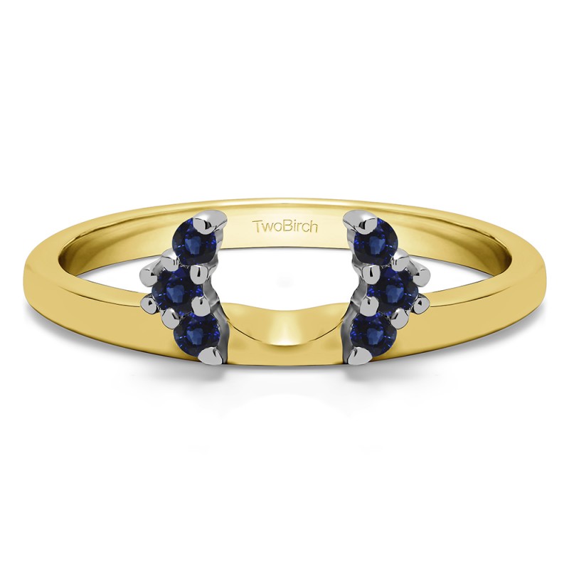 This ring wrap has 6 round, prong set stones with a total combined weight of 0.13 carats. It has a total width of 1.9 millimeters and has three stones on each side of the center that create the look of a halo engagement ring once you add your solitaire. This ring wrap is made to fit a round solitaire from 0.25 carat up to 0.75 carat, or a marquise solitaire from 0.25 carat up to 0.5 carat, or a princess solitaire from 0.5 carat up to 0.75 carat.