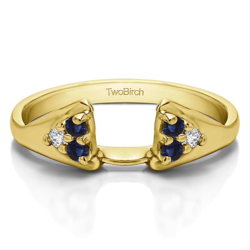 This ring wrap has 6 round, prong set stones with a total combined weight of 0.15 carats. It has a total width of 2 millimeters and has six stones, three on each side of the center, giving it a three stone look. This ring wrap is made to fit a round solitaire from 0.25 carat up to 1 carat, or a marquise solitaire from 0.25 carat up to 0.5 carat, or a princess solitaire from 0.3 carat up to 1 carat.