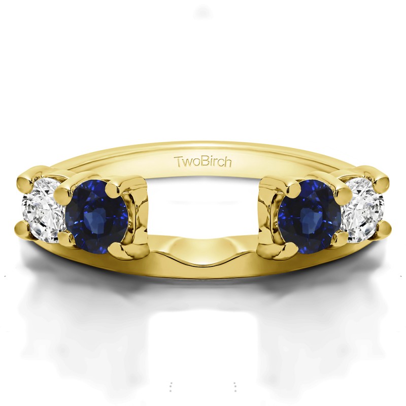 This ring wrap has 4 round, prong set stones with a total combined weight of 0.15 carats. It has a total width of 2 millimeters and has four stones, which graduate in size. This ring wrap is made to fit a round solitaire from 0.25 carat up to 1 carat, or a marquise solitaire from 0.25 carat up to 0.5 carat, or a princess solitaire from 0.25 carat up to 1 carat.