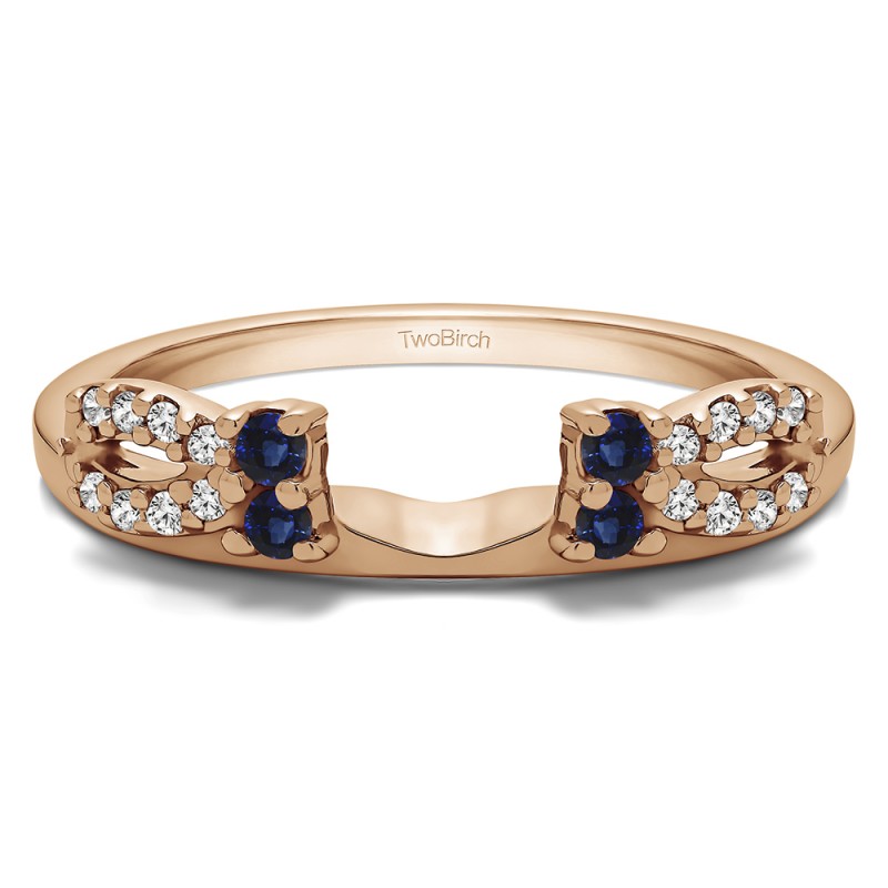 This ring wrap has 20 round, prong set stones with a total combined weight of 0.2 carats. It has a total width of 2 millimeters. The stones in this wrap are set with a cutout in the center giving it a bow shape. This ring wrap is made to fit a round solitaire from 0.25 carat up to 0.5 carat, or a marquise solitaire from 0.25 carat up to 0.5 carat, or a princess solitaire from 0.25 carat up to 0.5 carat.