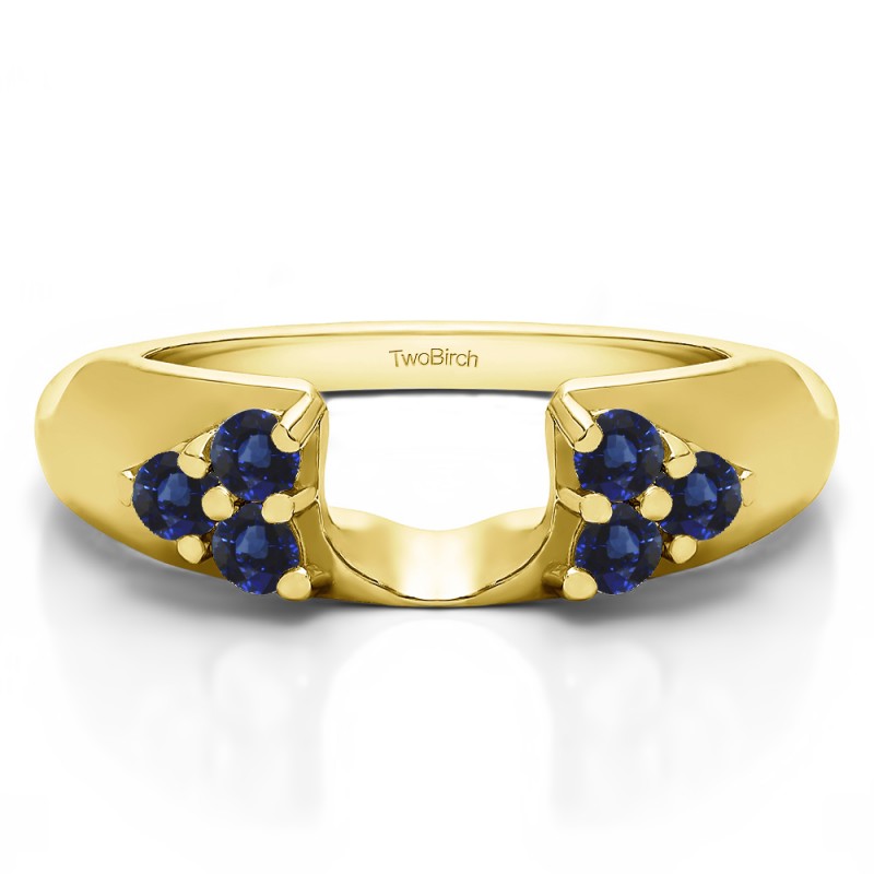 This ring wrap has 6 round, prong set stones with a total combined weight of 0.24 carats. It has a total width of 1.7 millimeters and has two clusters of round stones. This ring wrap is made to fit a round solitaire from 0.5 carat up to 1.5 carat, or a marquise solitaire from 0.25 carat up to 0.5 carat, or a princess solitaire from 0.5 carat up to 0.75 carat.