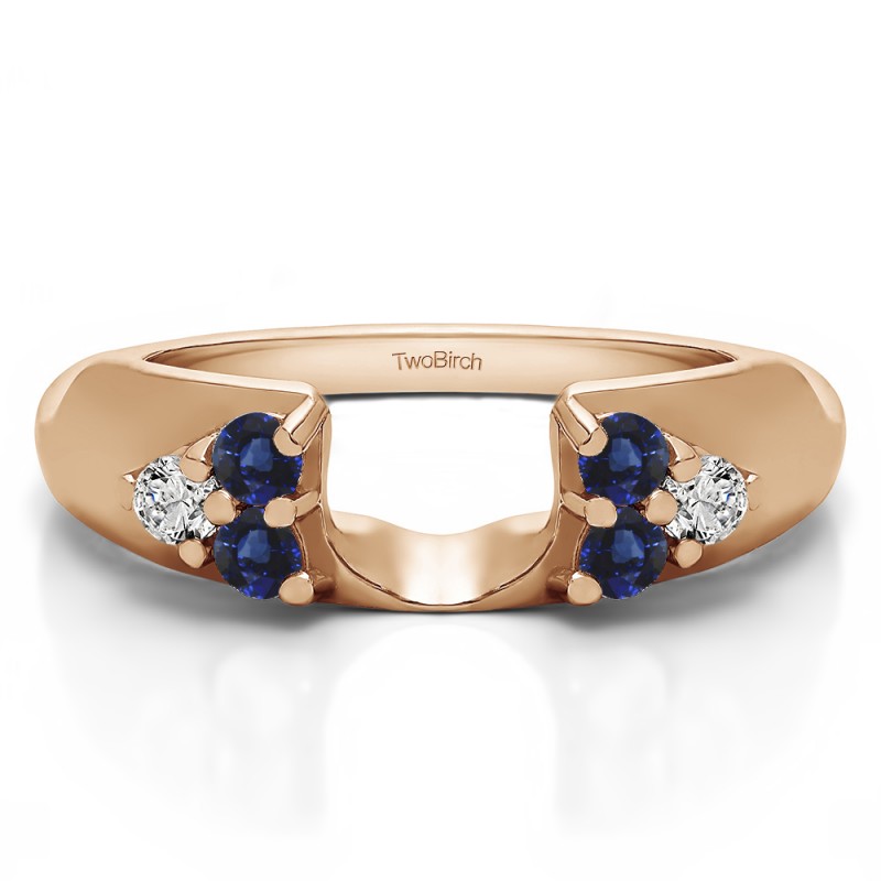 This ring wrap has 6 round, prong set stones with a total combined weight of 0.24 carats. It has a total width of 1.7 millimeters and has two clusters of round stones. This ring wrap is made to fit a round solitaire from 0.5 carat up to 1.5 carat, or a marquise solitaire from 0.25 carat up to 0.5 carat, or a princess solitaire from 0.5 carat up to 0.75 carat.
