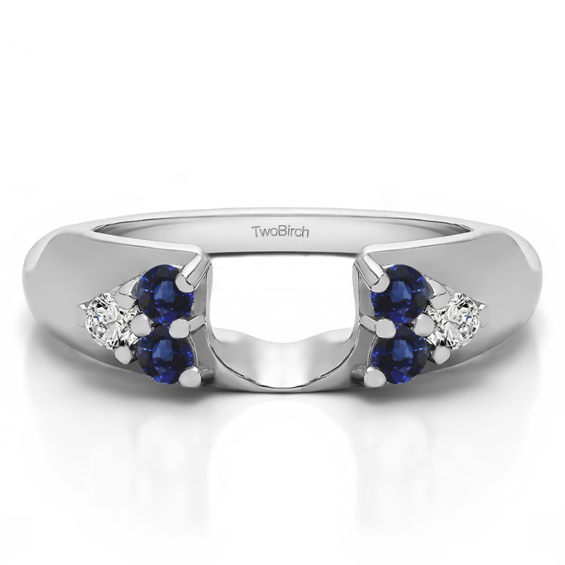 This ring wrap has 6 round, prong set stones with a total combined weight of 0.24 carats. It has a total width of 1.7 millimeters and has two clusters of round stones. This ring wrap is made to fit a round solitaire from 0.5 carat up to 1.5 carat, or a marquise solitaire from 0.25 carat up to 0.5 carat, or a princess solitaire from 0.5 carat up to 0.75 carat.