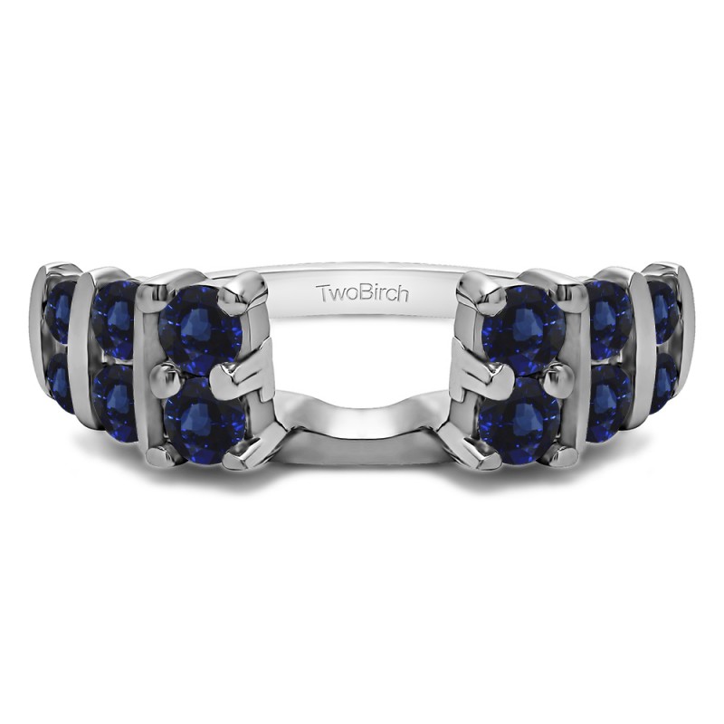 This ring wrap has 12 stones in total. It features a mix of round and round prong set stones with a total combined weight of 0.25 carats. It has a total width of 2 millimeters and has three rows of stones, bar set, and finished with a traditional high polish. This ring wrap is made to fit a round solitaire from 0.5 carat up to 1 carat, or a marquise solitaire from 0.25 carat up to 0.5 carat, or a princess solitaire from 0.5 carat up to 1 carat.
