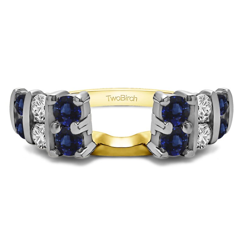 This ring wrap has 12 stones in total. It features a mix of round and round prong set stones with a total combined weight of 0.25 carats. It has a total width of 2 millimeters and has three rows of stones, bar set, and finished with a traditional high polish. This ring wrap is made to fit a round solitaire from 0.5 carat up to 1 carat, or a marquise solitaire from 0.25 carat up to 0.5 carat, or a princess solitaire from 0.5 carat up to 1 carat.