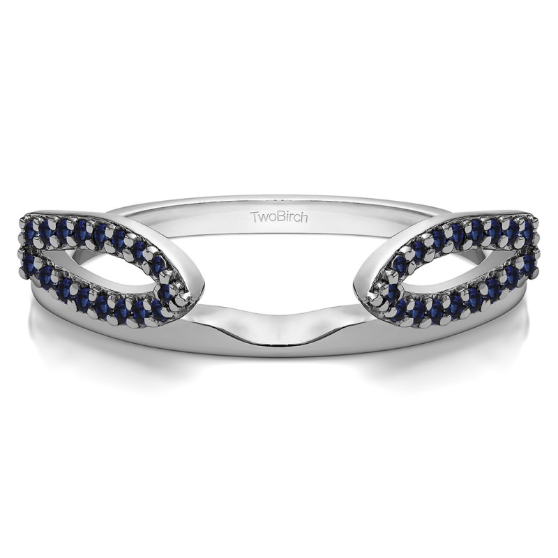 This ring wrap has 34 round, prong set stones with a total combined weight of 0.25 carats. It has a total width of 1.8 millimeters and is specifically designed to fit with a cathedral style engagement ring. This ring wrap is made to fit a round solitaire from 0.75 carat up to 1.25 carat, or a marquise solitaire from 1 carat up to 1.5 carat, or a princess solitaire from 0.75 carat up to 1 carat.