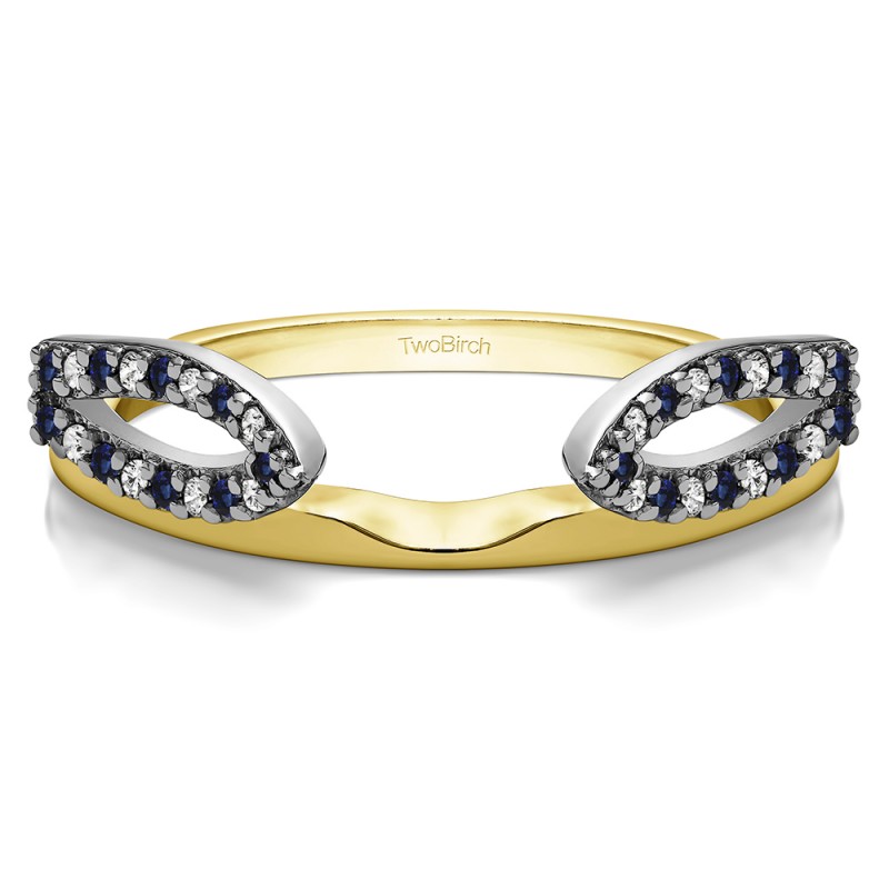This ring wrap has 34 round, prong set stones with a total combined weight of 0.25 carats. It has a total width of 1.8 millimeters and is specifically designed to fit with a cathedral style engagement ring. This ring wrap is made to fit a round solitaire from 0.75 carat up to 1.25 carat, or a marquise solitaire from 1 carat up to 1.5 carat, or a princess solitaire from 0.75 carat up to 1 carat.