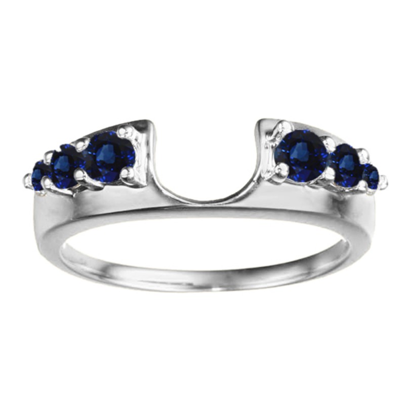 This ring wrap has 6 round, prong set stones with a total combined weight of 0.25 carats. It has a total width of 1.9 millimeters. The stones in the ring wrap jacket are graduated in size. This ring wrap is made to fit a round solitaire from 0.5 carat up to 2 carat, or a marquise solitaire from 0.25 carat up to 0.5 carat, or a princess solitaire from 0.5 carat up to 0.75 carat.