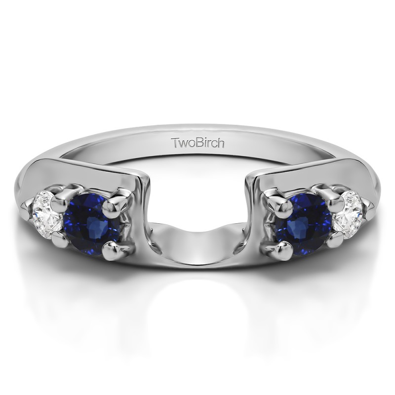This ring wrap has 4 round, prong set stones with a total combined weight of 0.25 carats. It has a total width of 1.8 millimeters. The stones in the ring wrap jacket are graduated in size. This ring wrap is made to fit a round solitaire from 0.5 carat up to 0.75 carat, or a marquise solitaire from 0.25 carat up to 0.5 carat, or a princess solitaire from 0.5 carat up to 0.75 carat.