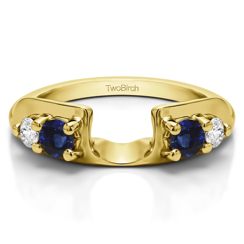 This ring wrap has 4 round, prong set stones with a total combined weight of 0.25 carats. It has a total width of 1.8 millimeters. The stones in the ring wrap jacket are graduated in size. This ring wrap is made to fit a round solitaire from 0.5 carat up to 0.75 carat, or a marquise solitaire from 0.25 carat up to 0.5 carat, or a princess solitaire from 0.5 carat up to 0.75 carat.