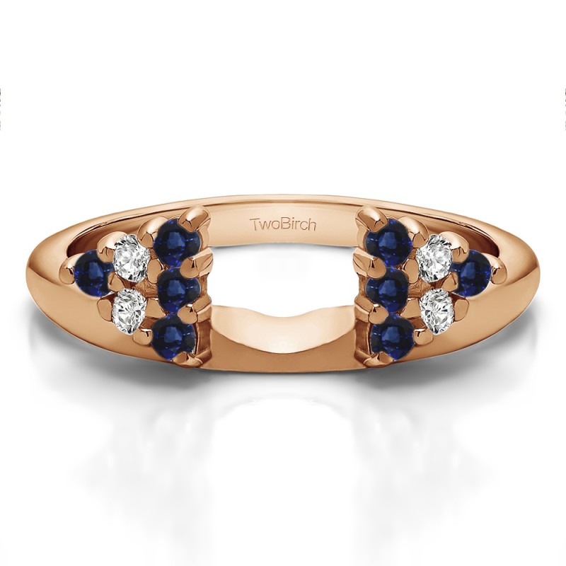 This ring wrap has 12 round, prong set stones with a total combined weight of 0.25 carats. It has a total width of 1.6 millimeters. The stones in this wrap enhance are set in two clusters, on each side of the center, making it appear as a three stone ring when added onto your solitaire. This ring wrap is made to fit a round solitaire from 0.25 carat up to 1 carat, or a marquise solitaire from 0.25 carat up to 0.5 carat, or a princess solitaire from 0.3 carat up to 1 carat.