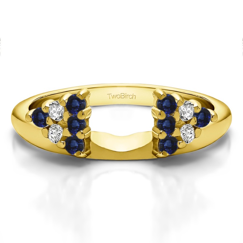 This ring wrap has 12 round, prong set stones with a total combined weight of 0.25 carats. It has a total width of 1.6 millimeters. The stones in this wrap enhance are set in two clusters, on each side of the center, making it appear as a three stone ring when added onto your solitaire. This ring wrap is made to fit a round solitaire from 0.25 carat up to 1 carat, or a marquise solitaire from 0.25 carat up to 0.5 carat, or a princess solitaire from 0.3 carat up to 1 carat.