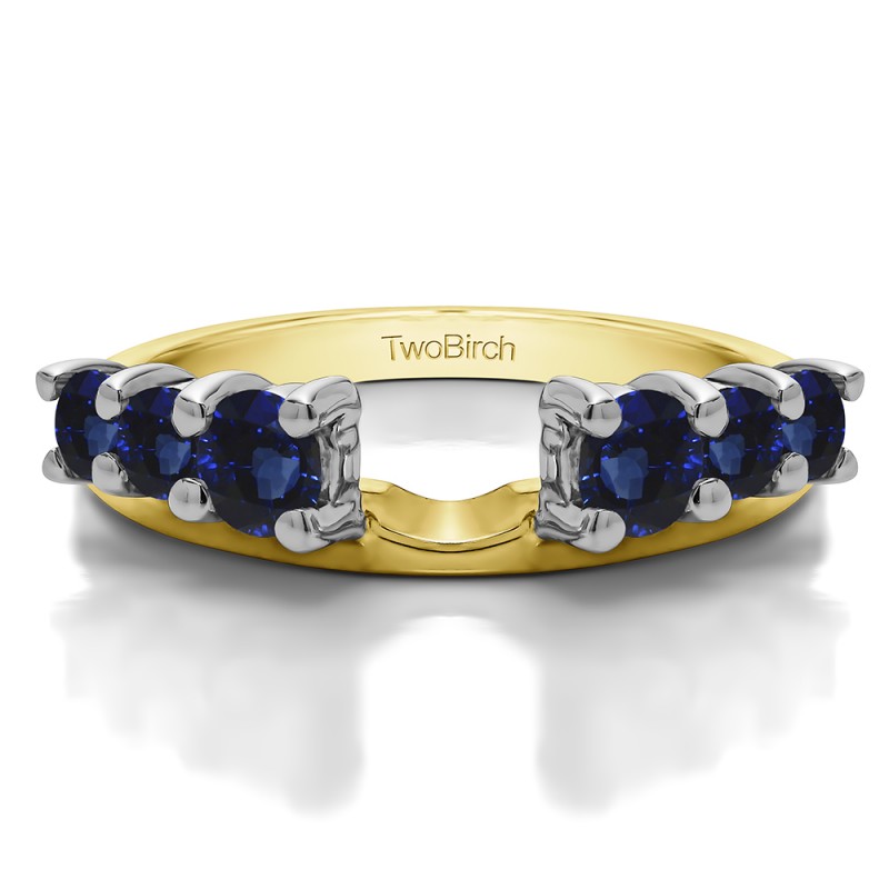 This ring wrap has 6 round, prong set stones with a total combined weight of 0.25 carats. It has a total width of 1.7 millimeters and has six stones, graduated in size. This ring wrap is made to fit a round solitaire from 0.25 carat up to 0.5 carat, or a marquise solitaire from 0.25 carat up to 0.5 carat, or a princess solitaire from 0.25 carat up to 0.5 carat.