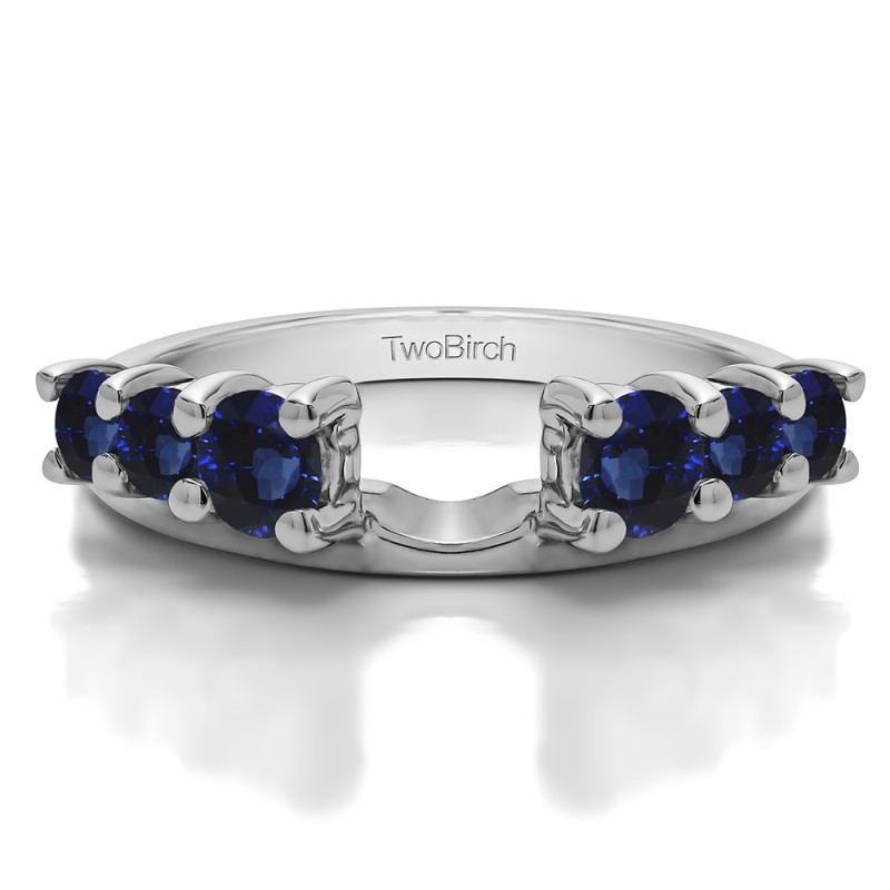 This ring wrap has 6 round, prong set stones with a total combined weight of 0.25 carats. It has a total width of 1.7 millimeters and has six stones, graduated in size. This ring wrap is made to fit a round solitaire from 0.25 carat up to 0.5 carat, or a marquise solitaire from 0.25 carat up to 0.5 carat, or a princess solitaire from 0.25 carat up to 0.5 carat.