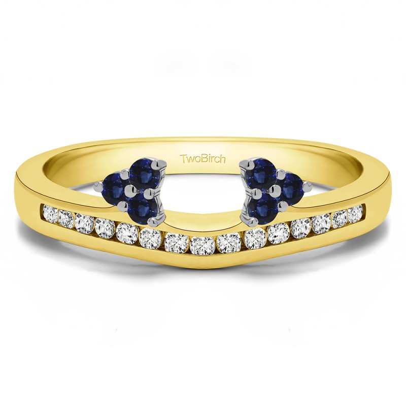 This ring wrap has 21 stones in total. It features a mix of round and round prong set stones with a total combined weight of 0.25 carats. It has a total width of 2 millimeters. It on this anniversary wrap is contoured and channel set with round stones. It also features prong set clusters of round stones with a high polish finish. This ring wrap is made to fit a round solitaire from 0.2 carat up to 0.3 carat, or a marquise solitaire from 0.25 carat up to 0.5 carat, or a princess solitaire from 0.2 carat up to 0.3 carat.