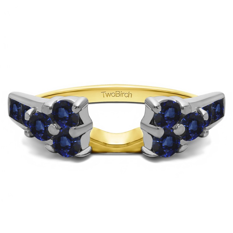 This ring wrap has 10 stones in total. It features a mix of round and round prong set stones with a total combined weight of 0.26 carats. It has a total width of 2 millimeters and has a high polish finish and a cluster of round stones. This ring wrap is made to fit a round solitaire from 0.3 carat up to 0.5 carat, or a marquise solitaire from 0.25 carat up to 0.5 carat, or a princess solitaire from 0.3 carat up to 0.5 carat.