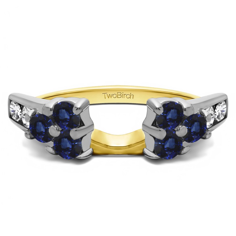 This ring wrap has 10 stones in total. It features a mix of round and round prong set stones with a total combined weight of 0.26 carats. It has a total width of 2 millimeters and has a high polish finish and a cluster of round stones. This ring wrap is made to fit a round solitaire from 0.3 carat up to 0.5 carat, or a marquise solitaire from 0.25 carat up to 0.5 carat, or a princess solitaire from 0.3 carat up to 0.5 carat.