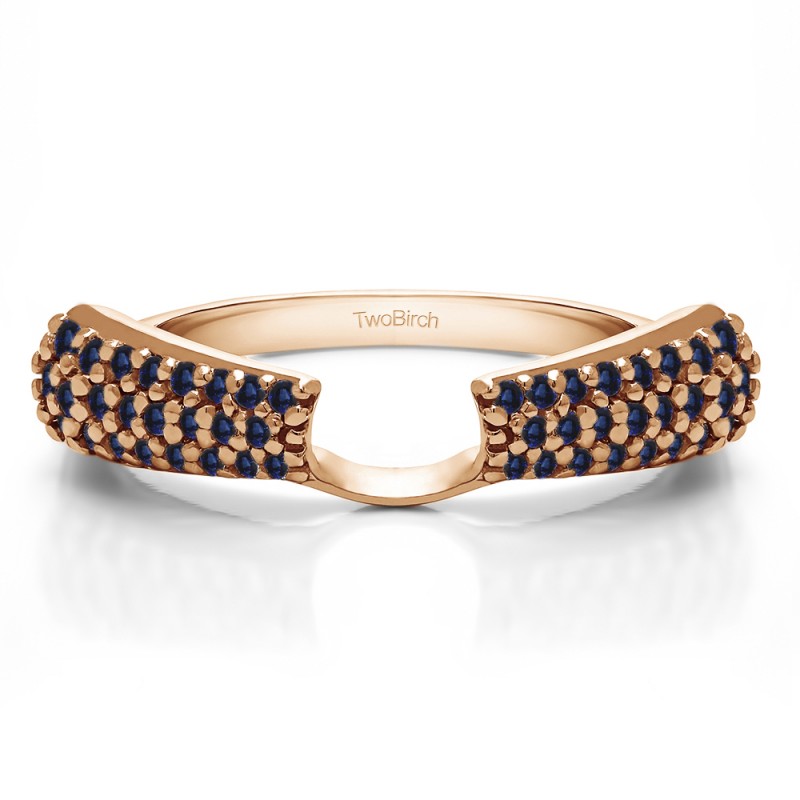 This ring wrap has 48 round, prong set stones with a total combined weight of 0.29 carats. It has a total width of 2 millimeters and features three rows of pave set stones with a stunning high polish finish. This ring wrap is made to fit a round solitaire from 0.75 carat up to 1 carat, or a marquise solitaire from 0.5 carat up to 0.75 carat, or a princess solitaire from 0.5 carat up to 1 carat.