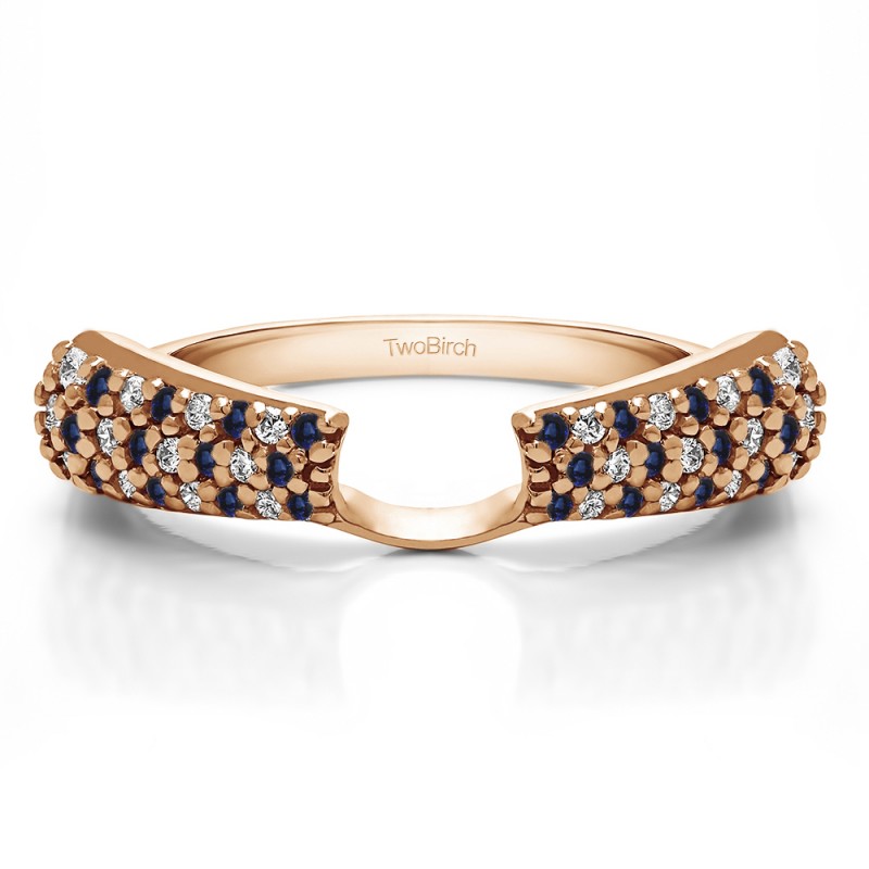 This ring wrap has 48 round, prong set stones with a total combined weight of 0.29 carats. It has a total width of 2 millimeters and features three rows of pave set stones with a stunning high polish finish. This ring wrap is made to fit a round solitaire from 0.75 carat up to 1 carat, or a marquise solitaire from 0.5 carat up to 0.75 carat, or a princess solitaire from 0.5 carat up to 1 carat.