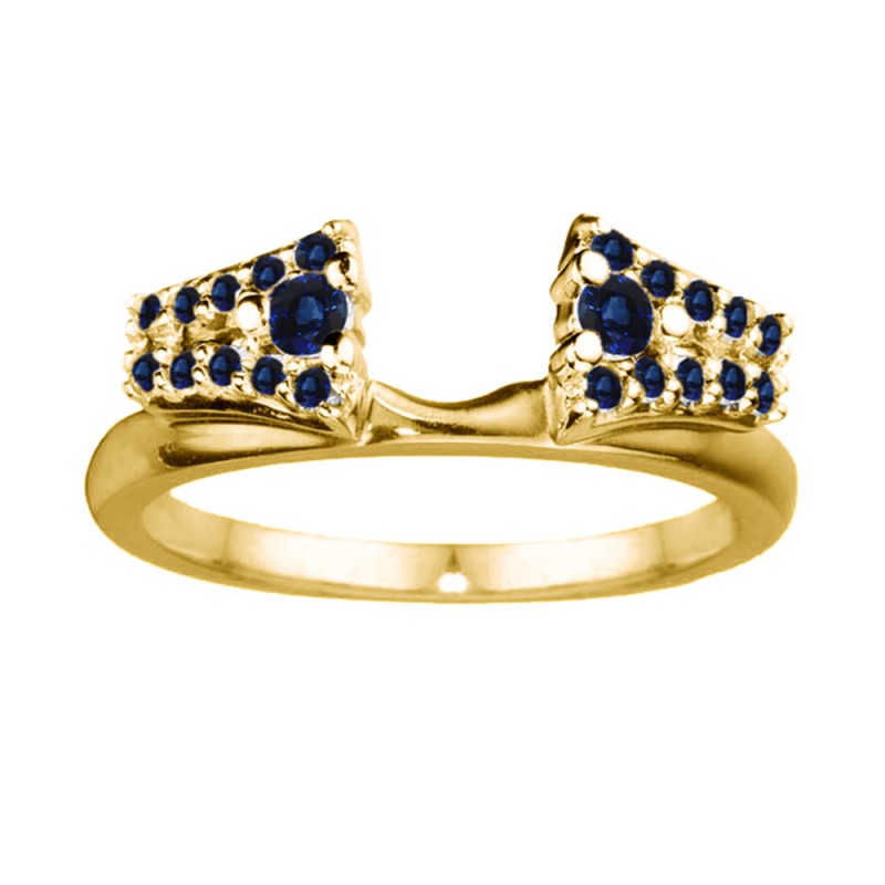 This ring wrap has 22 round, prong set stones with a total combined weight of 0.3 carats. It has a total width of 2 millimeters and has a double row of shared prong set stones with one larger one at the top, near the center. This ring wrap is made to fit a round solitaire from 0.5 carat up to 1.5 carat, or a marquise solitaire from 0.25 carat up to 0.5 carat, or a princess solitaire from 0.5 carat up to 1.5 carat.