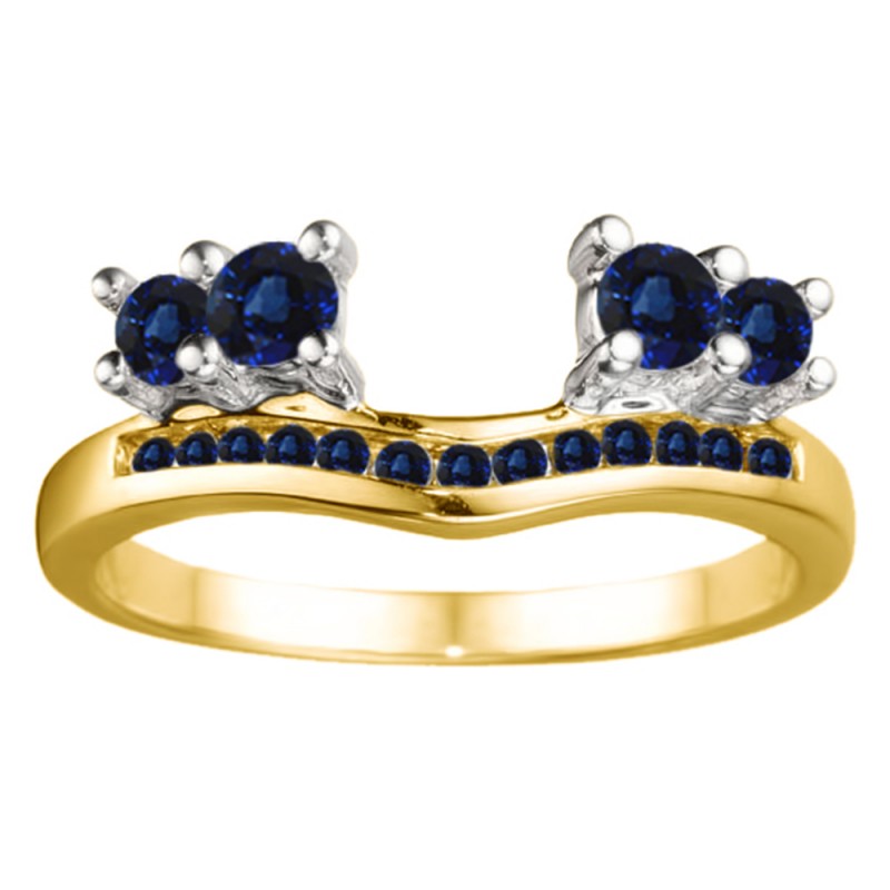 This ring wrap has 17 stones in total. It features a mix of round and round prong set stones with a total combined weight of 0.34 carats. It has a total width of 2 millimeters and features a row of round channel set stones on the band and four round prong set stones. Once you add your solitaire, it will create the look of an engagement ring with a matching channel set band. This ring wrap is made to fit a round solitaire from 0.3 carat up to 2 carat, or a marquise solitaire from 0.25 carat up to 0.5 carat, or a princess solitaire from 0.25 carat up to 0.5 carat.