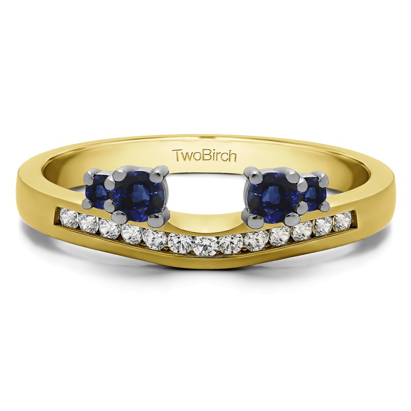 This ring wrap has 17 stones in total. It features a mix of round and round prong set stones with a total combined weight of 0.34 carats. It has a total width of 2 millimeters and features a row of round channel set stones on the band and four round prong set stones. Once you add your solitaire, it will create the look of an engagement ring with a matching channel set band. This ring wrap is made to fit a round solitaire from 0.3 carat up to 2 carat, or a marquise solitaire from 0.25 carat up to 0.5 carat, or a princess solitaire from 0.25 carat up to 0.5 carat.