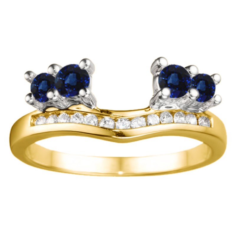 This ring wrap has 17 stones in total. It features a mix of round and round prong set stones with a total combined weight of 0.34 carats. It has a total width of 2 millimeters and features a row of round channel set stones on the band and four round prong set stones. Once you add your solitaire, it will create the look of an engagement ring with a matching channel set band. This ring wrap is made to fit a round solitaire from 0.3 carat up to 2 carat, or a marquise solitaire from 0.25 carat up to 0.5 carat, or a princess solitaire from 0.25 carat up to 0.5 carat.