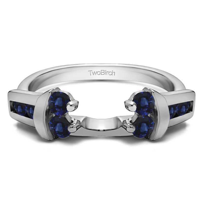 This ring wrap has 8 stones in total. It features a mix of round and round prong set stones with a total combined weight of 0.42 carats. It has a total width of 2 millimeters and has two rows of stone set in channels and prongs, perpendicular to each other. This ring wrap is made to fit a round solitaire from 0.25 carat up to 0.5 carat, or a marquise solitaire from 0.5 carat up to 0.75 carat, or a princess solitaire from 0.5 carat up to 0.75 carat.