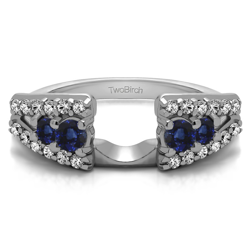 This ring wrap has 28 round, prong set stones with a total combined weight of 0.44 carats. It has a total width of 2 millimeters and features a classic high polish finish. This ring wrap is made to fit a round solitaire from 0.5 carat up to 1.5 carat, or a marquise solitaire from 0.5 carat up to 1.5 carat, or a princess solitaire from 0.5 carat up to 1.5 carat.