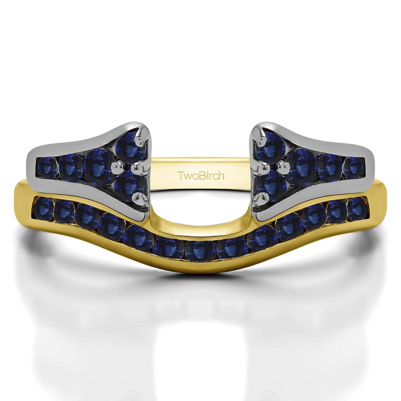 This ring wrap has 23 round, channel set stones with a total combined weight of 0.48 carats. It has a total width of 2 millimeters and features a row of round channel set stones on the band and a cluster of round stones that adorn the center opening. Once you add your solitaire, it will create the look of an engagement ring with a matching channel set band. This ring wrap is made to fit a round solitaire from 1 carat up to 1.5 carat, or a marquise solitaire from 0.25 carat up to 0.5 carat, or a princess solitaire from 1 carat up to 1.5 carat.