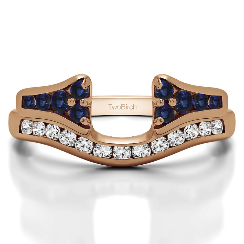 This ring wrap has 23 round, channel set stones with a total combined weight of 0.48 carats. It has a total width of 2 millimeters and features a row of round channel set stones on the band and a cluster of round stones that adorn the center opening. Once you add your solitaire, it will create the look of an engagement ring with a matching channel set band. This ring wrap is made to fit a round solitaire from 1 carat up to 1.5 carat, or a marquise solitaire from 0.25 carat up to 0.5 carat, or a princess solitaire from 1 carat up to 1.5 carat.